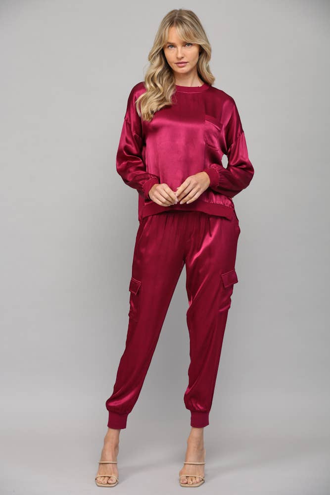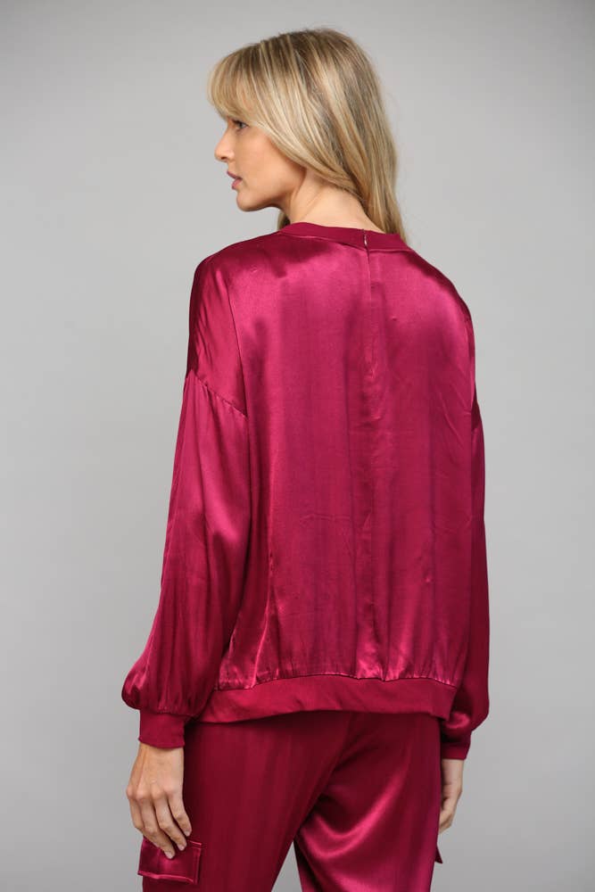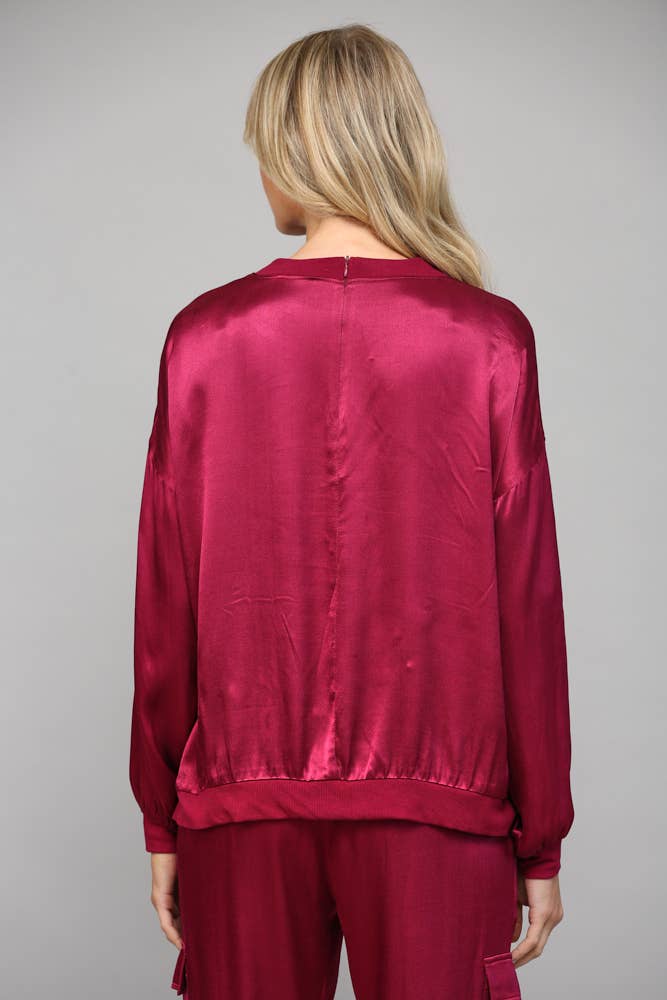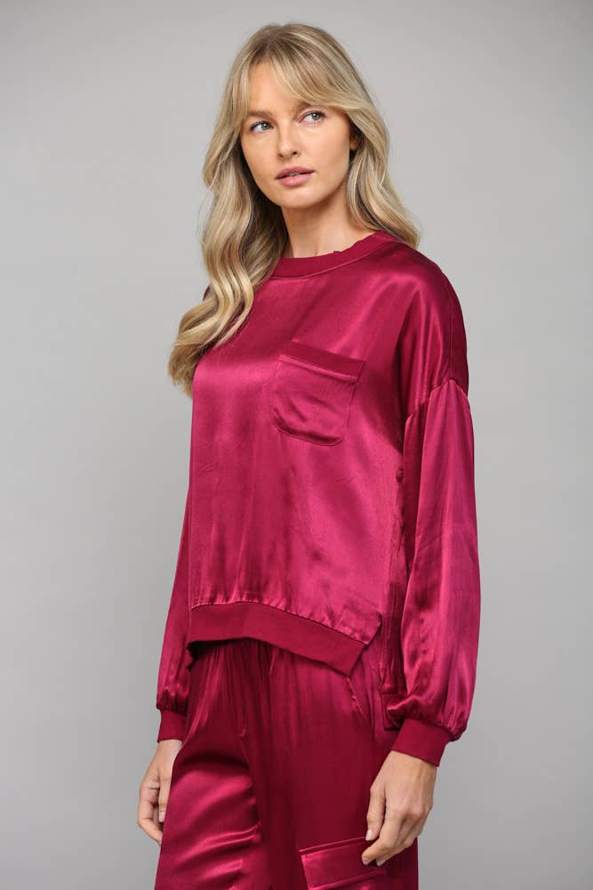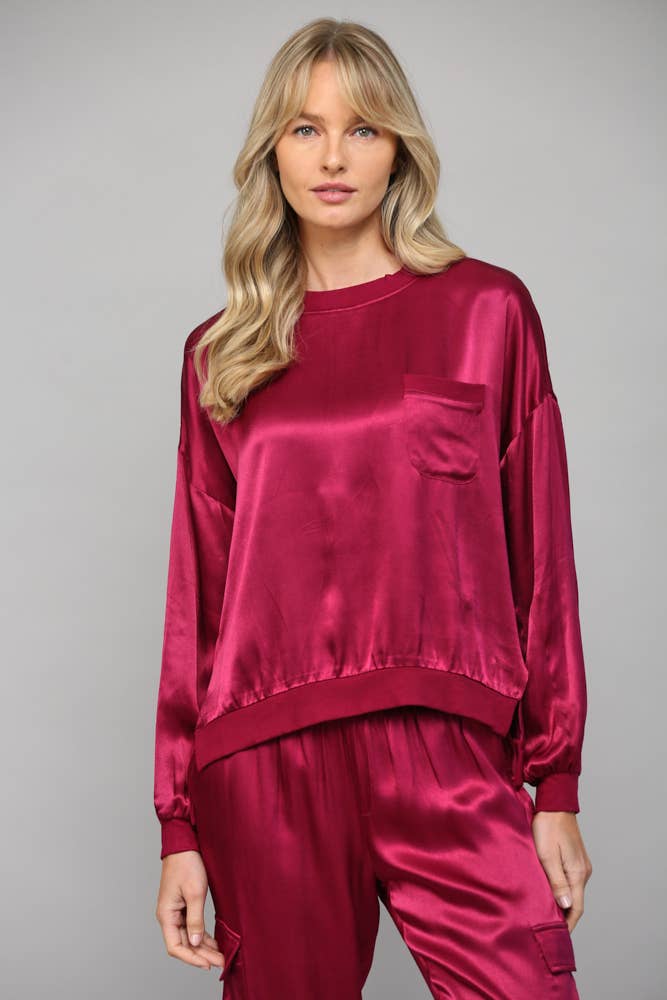 Elevate your basics with this silky satin top that's anything but ordinary. The round neckline keeps things classic while contrasting ribbed hems add a fun, unexpected twist. Smooth, luxe fabric drapes beautifully for an effortlessly polished look that works from office to evening out. A wardrobe essential that proves simple can still be seriously stylish.